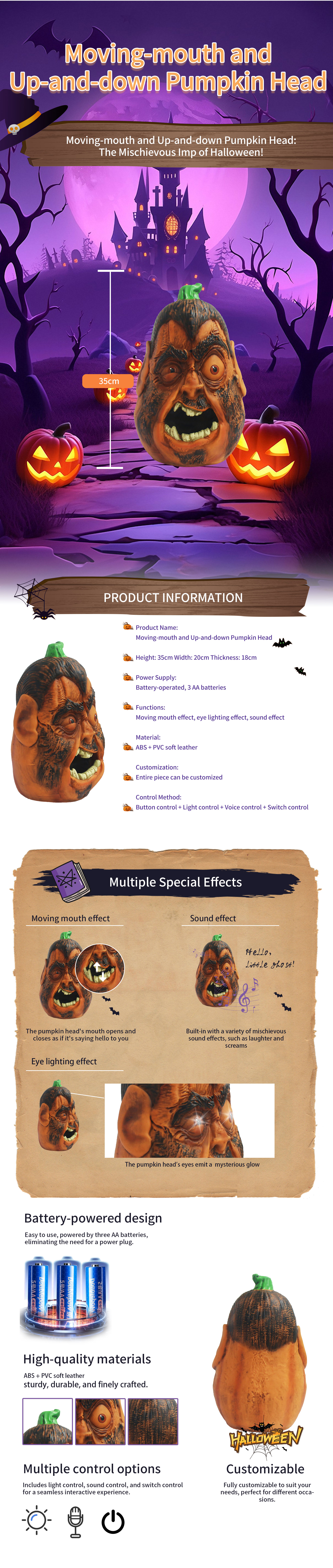 Moving-mouth and Up-and-down Pumpkin Head(Support OEM ODM)